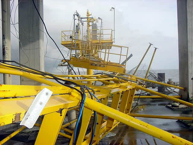 Taken by field crews from the Hazard Evaluations and Technical Assistance Branch of the Division of Surveillance, Hazard Evaluations and Field Studies of the National Institute for Occupational Safety and Health out of Parkway, Mississippi, they indicate the significant toll exerted on oil production and transmission facilities in the Gulf.