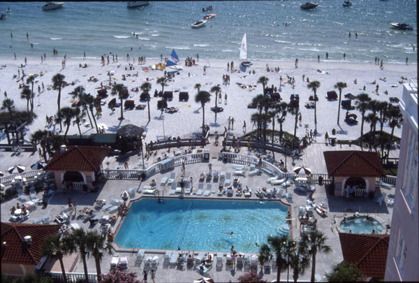 (ST. PETE BEACH, FL) I wasn’t a huge Tom Petty fan in ’85, with the major exception of his trademark hit, "American Girl". I dug it because of it’s track back to Gainesville and the connection to Dubs, spectacular backbeat and of course that whacked out intro. Toss in the slightly out-of-synch harmonies and you’ve got an instant classic. When the call came a few days earlier to shoot a gig at the Don CeSar I thought, "Yeah, ok, no big deal." In all the years before and since, I’d only been there once — to shoot a friend’s wedding (his third but not last) just the month before. Bulldozing The Show The deal was, Tom had broken his famous hand a few months before and this was ostensibly the first time since his surgery anyone would have any idea of whether or not he’d still be able to play. Hard to believe now, but before round-the-clock cable blabbermouths hooked mostly on self-adoration and stupidity, it was possible to embargo news to either prevent or spur speculation. So there I was to record the moment of truth, shooting stock for LGI on a referral from Tampa ASMP buddy and ace studio shooter Terry Drymon. (Terry had an infamous collection of model’s other lips on the wall of his studio dressing room. First timers couldn’t quite figure out how the lipstick on cocktail napkin impressions were created.) Me and MTV in full music video production mode, which obviously was a huge clue if you were wondering whether or not there was any doubt Tom still had a career. I wasn’t that sharp. The Way It Was, Then Neither were there personal computers, damn few "cell" phones, and fax machines were a status symbol that weighed a ton and cost a fortune. Photoshoots were covered the old-fashioned way: load up on film, make sure you had backup metering, check your "automatic" lenses to make sure they would, in fact, stop down to the set aperture when the shutter banged across and then reopen, load everything up and haul the assorted luggage around, through, up and down whatever obstacles popped up. What I remember is, as metering — first analog, then digital — became more precise, so to did the fanatic obsessive-compulsive behavior to constantly check the reflected light. Not like anything would be changing if, for instance, the assignment would take place on a penthouse patio underneath a brilliant and beautiful beachy Florida spring day. Lets just say for the sake of discussion we’d be shooting Ektachrome 200, which in this instance would come out to something around f8-11 at 1/500th. More or less, with no bounce off the Astroturf, as it was then referred to, covering the patio. Say, You With the Band? Duh! There wasn’t any pretense about the group. The atmosphere was relaxed, the mood laid back, and I was silently praying to the Kodak gods that my putting off overdue lens overhauls wouldn’t catch up with me today. Please, let me capture something worth smiling about. We mostly waited while the video crew finished laying track and setting lights. When they were satisfied, the band and one out-of-water photographer headed out onto the patio and in the next few moments I was introduced to the difference between top of their game professional musicians and club bands playing covers. Bang! Straight into "American Girl" and immediately everyone was grinning like Santa came early and the tooth fairy left Travelers Cheques. One word describes the sound — tight. Yeah, these guys really are that good.